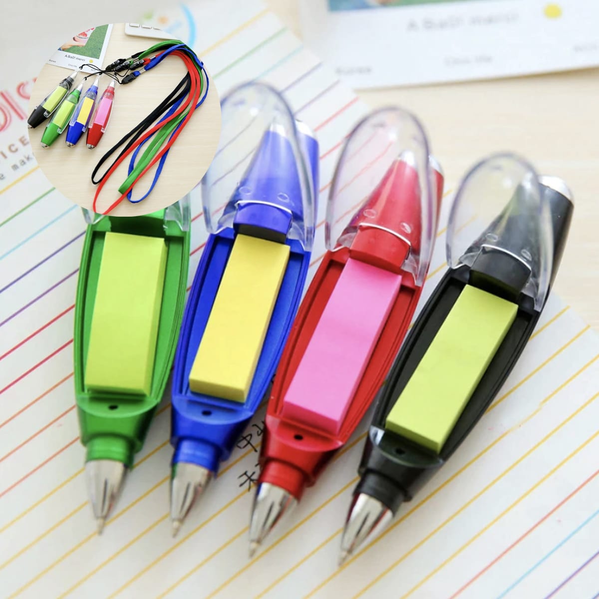 Innovative pen that comes with LED light & Post-it pad.