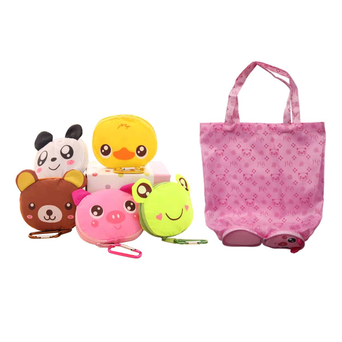 Cute animal foldable shopping bag that children will love to bring around You can keep your shopping bag into cute animals mascot when not in use. Ideal for gift with purchase campaign (GWP).