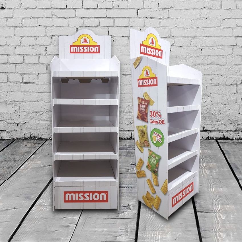 Display standee are commonly used in supermarket and trade channels. Look at this cost effective Mission Food standee we customised using corrugated board.