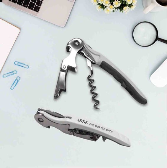 Introducing the Waiter Corkscrew Wine Opener, the perfect accessory for any wine lover. The hinged double-lever system makes it a breeze to open bottles without any hassle. Brand it with your logo to create a gift for wine lovers and customers!