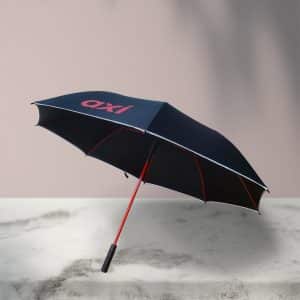This classic black on a quick-dry 190T pongee fabric is complemented with a sturdy 8k ribs structure design. A moving billboard for your business on the green golf turf, the large surface of the umbrella carrying a brand’s logo or tagline is sure to capture attention. Also, its straight plastic handle with coloured strip is another eye-catching element.