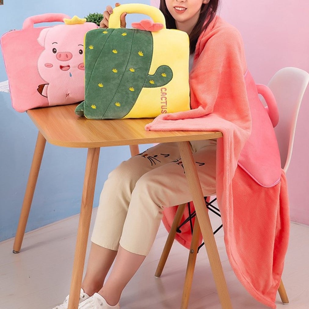 With this blanket cum cushion, you can use it when travelling, in the office and at home. This plush cushion unfolds into a long blanket (160 x 110 cm), perfect for taking a nap or curling up with your favourite book. It also folds into the shape of a laptop bag (40 x 35cm) with a carrier which can be used as a cushion or pillow. Available in adorable cartoon designs, these are great gift choices for kids. Print on your logo and give it away as promotional items to attract kids’ attention!