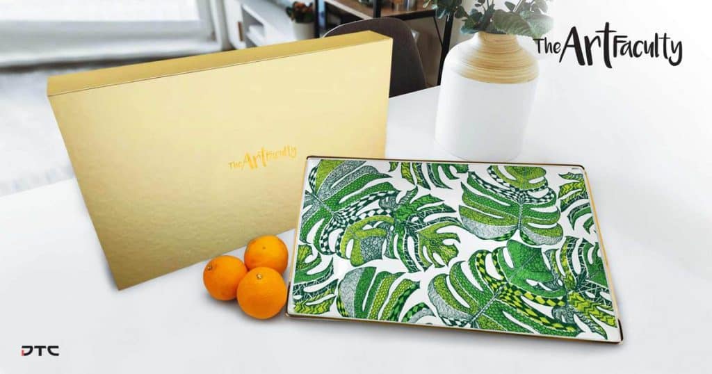 Coveted as a limited promotional gift, captivating when gifted as a gesture of appreciation to your exclusive corporate clients or trade partners. Regardless of the occasion or purpose, the aesthetically majestic gold rim definitely adds a touch of timeless elegance. Also made available at The Art Faculty Shop as one of their many delectable retail merchandise, the durability of this glazed ceramic serving platter will absolutely bring exposure of your brand to your customers for a long, long time.